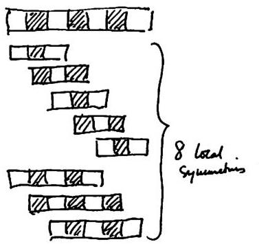 Roughly we may consider Salingaros’s measure $L$ in the following way. The measure $L$ which I have put forward in appendix 2 counts living centers by counting locally symmetric sets.⁴¹ That is possible in a very small structure (like the black and white strips I used), harder in a larger structure. It also makes no explicit use of the additional recursive information inherent in the other fourteen properties.