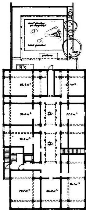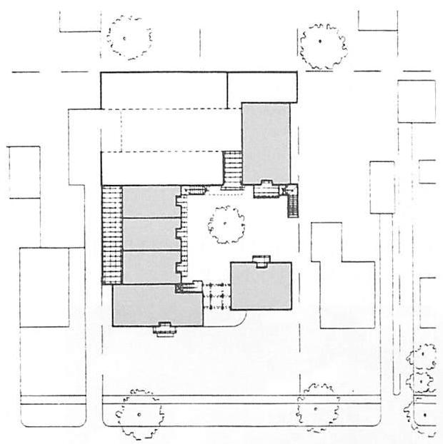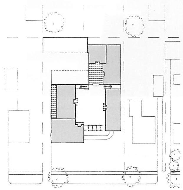 for example, the idea of making the building volume before knowing what is in the building, and the idea of placing the outdoor space before the building. Throughout, the project included a very different approach to the use of drawings, and to the relation of drawings to the permit process, and to the construction contract. Differences in on-site operations, during construction, for example, cardboard mockups, full size, of various building details. Others changes of process involved combinations of jurisdiction that were entirely unfamiliar: jurisdiction over money as a basis for making decisions about the porch. Unusual for an architect, jurisdiction over tiny details of construction-procedure, as in the basis for building the formwork of the columns to make them movable. Others involved apparent idiosyncracies of scale. For example, working out the building color so