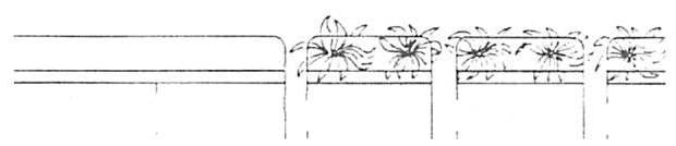 Then we tried an entirely different frieze design, reflecting the lily tiles in the base of the house. We made long pieces of this new frieze. It looked silly, too decorative, not calm enough—pretentious, not simple.
